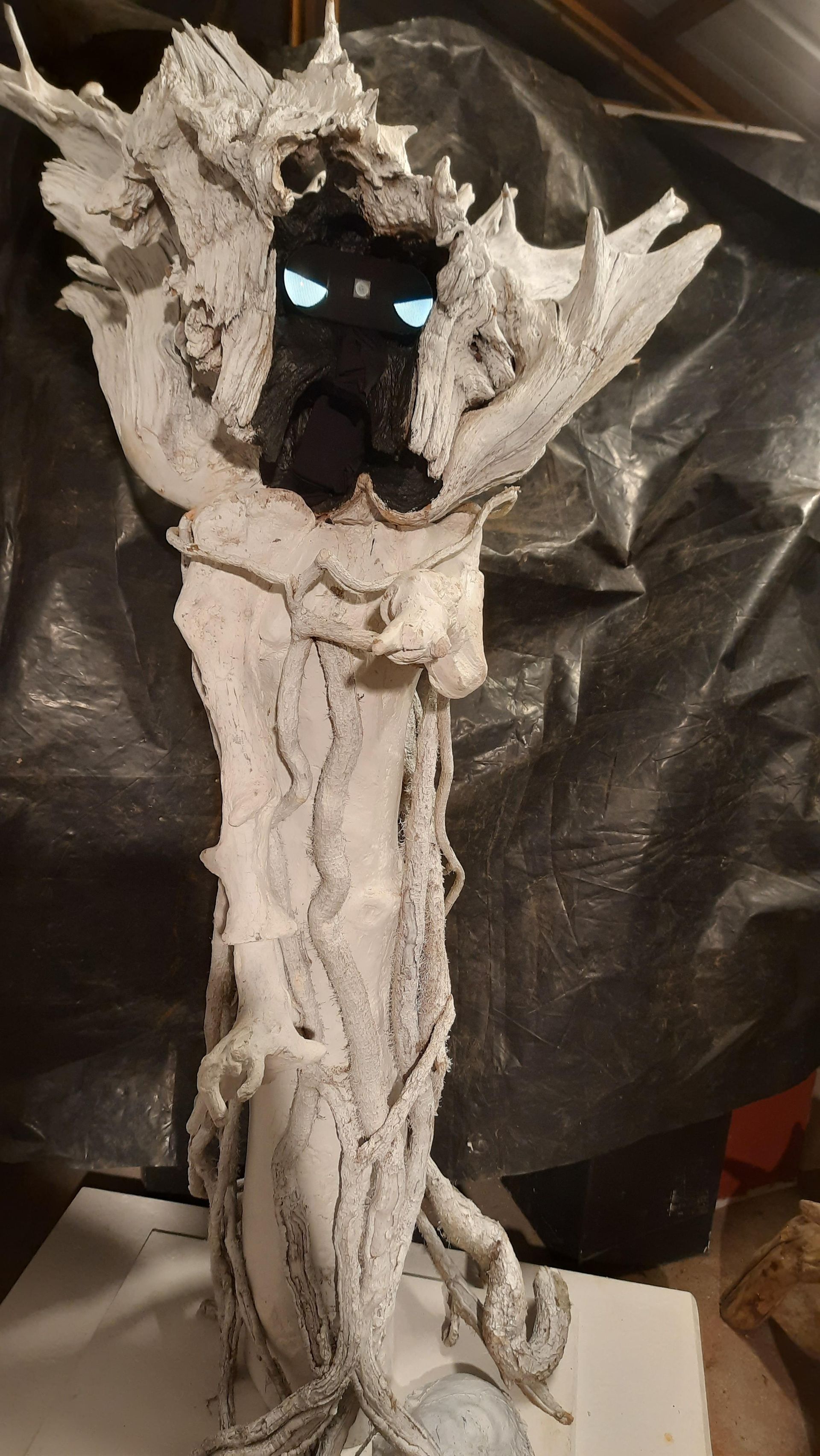 The Leshy (2024). The Leshy is one of many names given to the pagan Slavic deity of the forest, a deity or spirit common to most cultures around the world. Leshy will punish those who disrespect or misuse its resources – hampering, frightening, injuring, kidnapping, and even killing the offenders. Here in ghostly form, he points at us, accusing humankind for our shamefully poor treatment of forests and their inhabitants. You are warned…. Approach and his eyes will burn, and he will chill you with his voice – though we can perhaps redeem ourselves slightly if we offer him votives detailing and pledging our good behaviours. Then the Leshy might show us some mercy; even treat us benevolently when we enter his domain… if we speak softly and tread lightly...